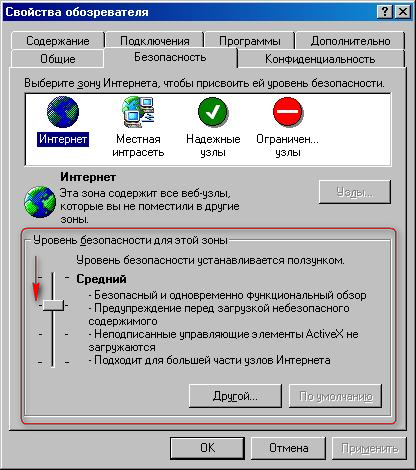 3. В разделе «Уровень безопасности для этой зоны» передвиньте ползунок мышкой до уровня «Средний» и нажмите на кнопку «ОК».