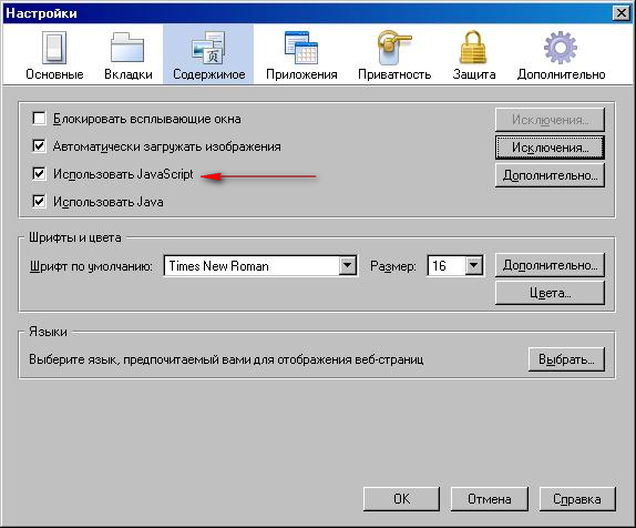 Как включить поддержку JavaScript в Mozilla Firefox 2.5 и выше: