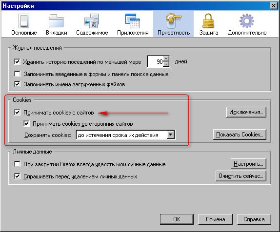 Как включить поддержку Cookie в Mozilla Firefox 2.5 и выше: