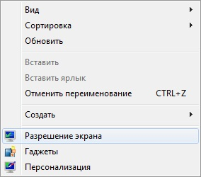 1. Кликните правой кнопкой мыши по рабочему столу на пустом месте и выберите «Разрешение экрана»